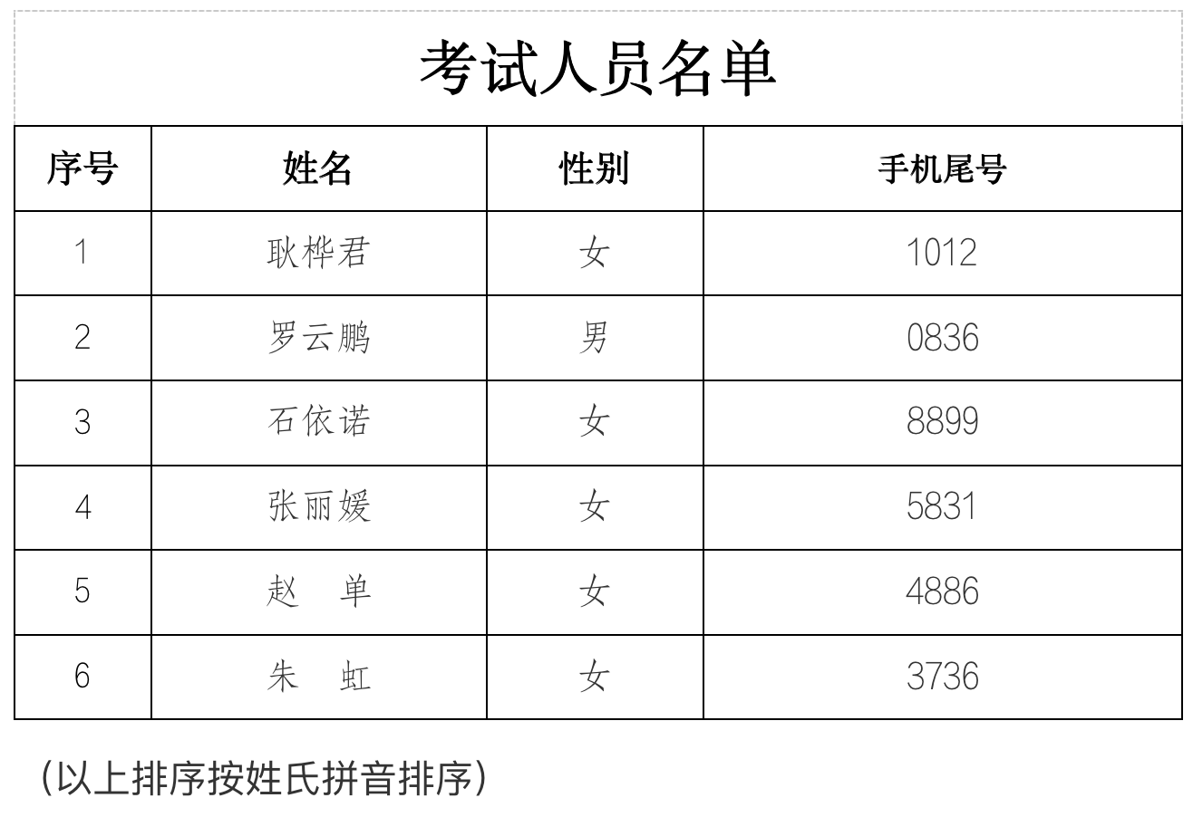 参加笔试人员名单见后。
