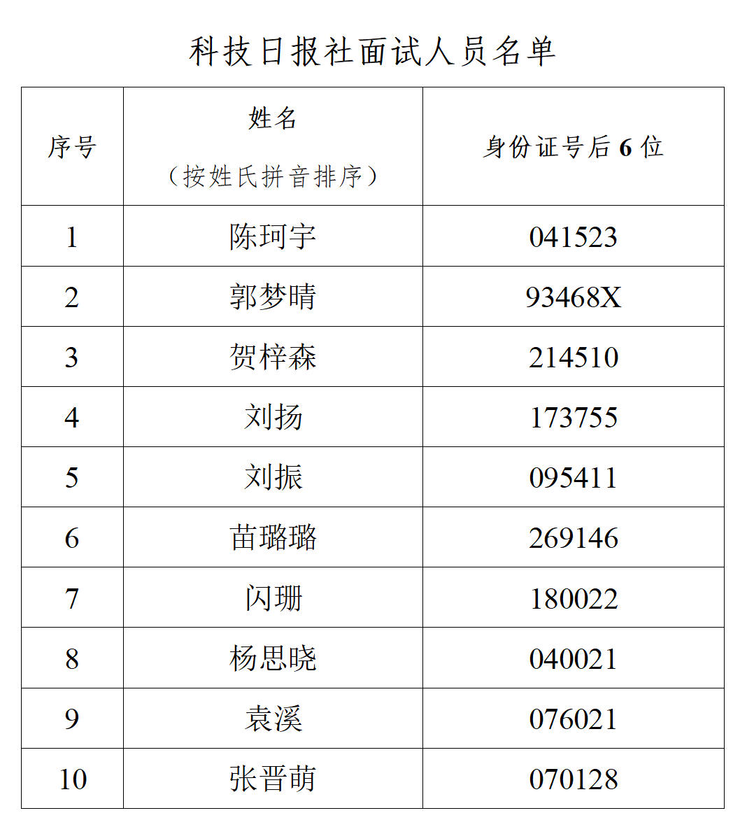 根据笔试成绩,共10人参加本次面试,具体名单见附件。