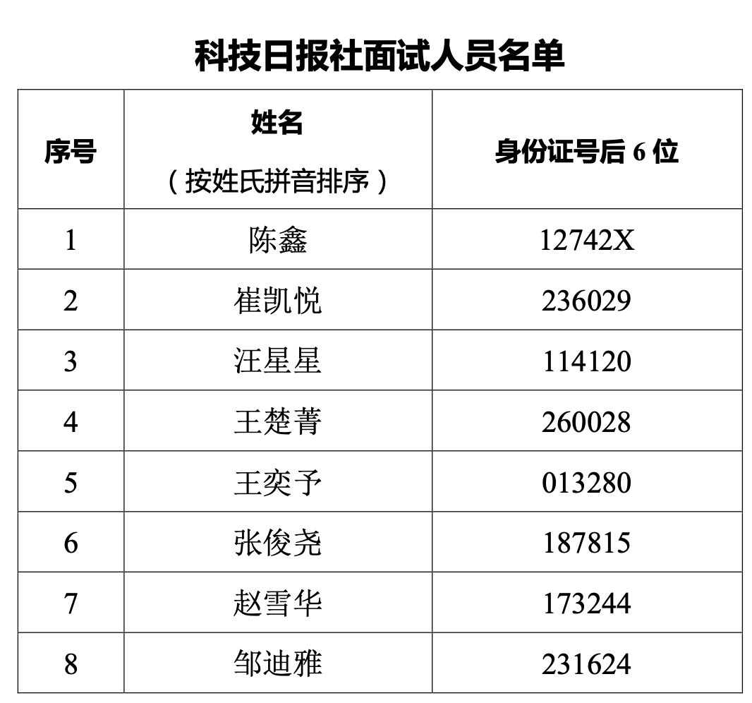 科技日报社2023年度第三批公开招聘高校应届毕业生面试将于2023年8月8日(星期二)举行,具体安排如下: