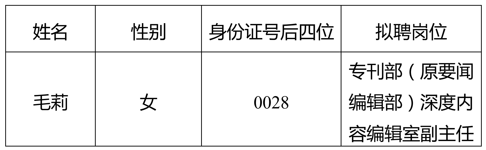 根据公开招聘相关规定,科技日报社组织开展了专刊部(原要闻编辑部)深度内容编辑室副主任(事业编制)公开招聘工作。经过笔试、面试、考察、体检等程序,研究确定了岗位拟聘人选,现进行公示。