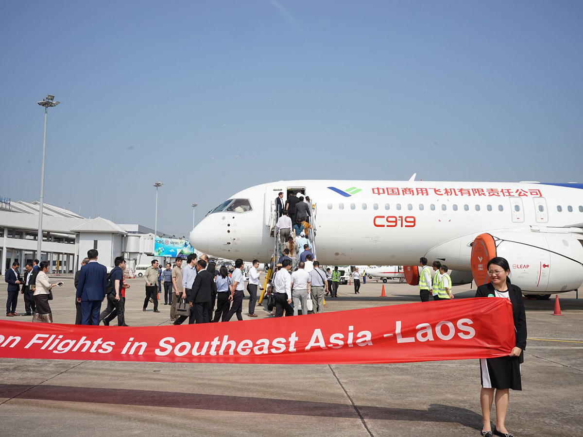 C919 and ARJ21 aircraft manufactured by the Commercial Aircraft Corporation of China, Ltd. (COMAC) arrived at Wattay International Airport on Sunday in order to give? demonstration flights from Vientiane to Luang Prabang on Monday.