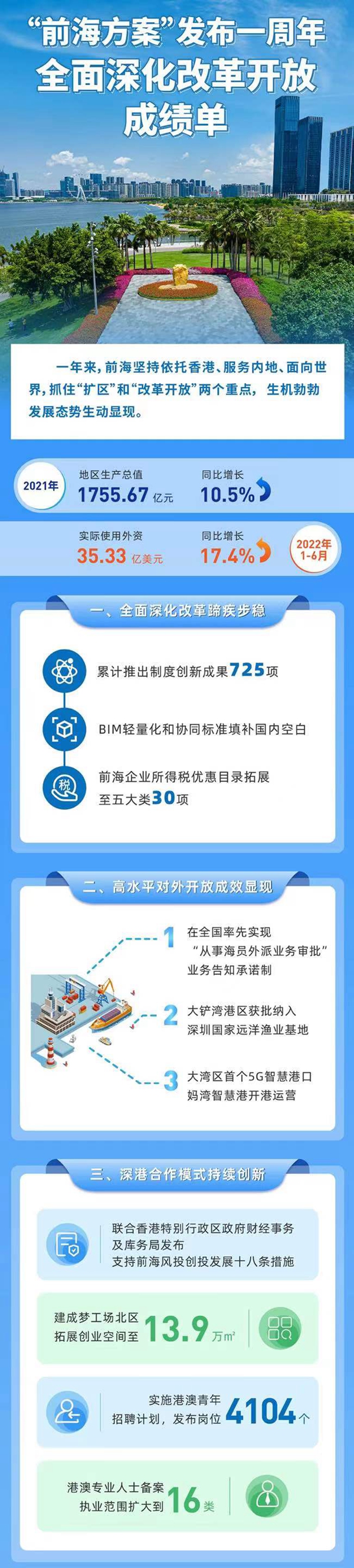 2021年9月6日,《全面深化前海深港现代服务业合作区改革开放方案》发布,前海合作区总面积由14.92平方公里扩展至120.56平方公里,承担起全面深化改革开放的责任和使命。一年来,前海抓住“扩区”和“改革开放”两个重点,在深港合作、对外开放、科技创新等方面展现出生机勃勃的发展态势。
