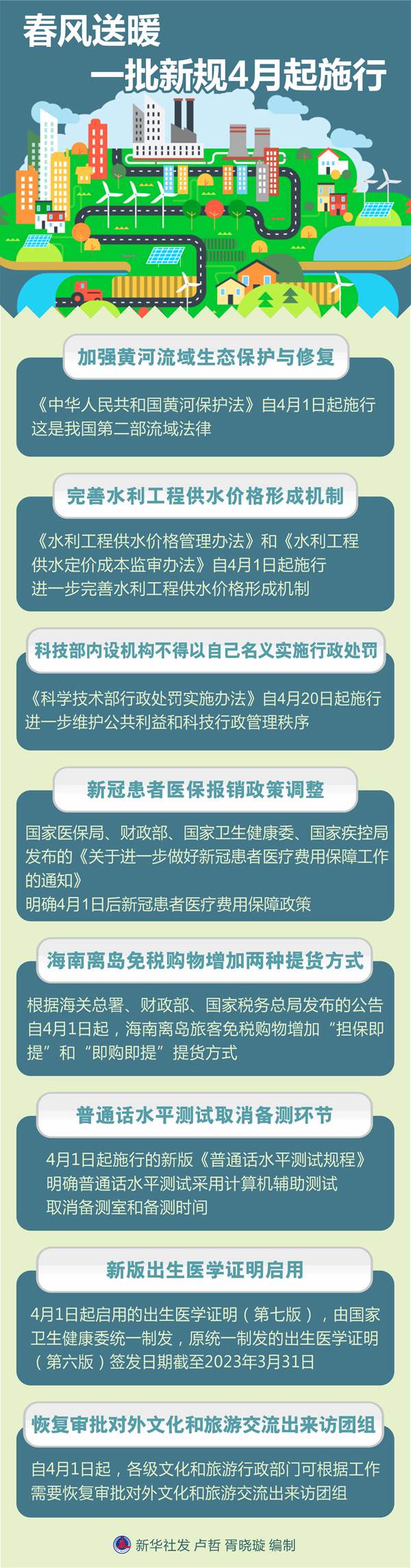 4月,一批新规开始施行,事关国计民生。推进黄河流域生态保护和高质量发展、规范科技领域行政处罚程序、健全激励约束并重的水价监管机制……更完善的法治,守护更安心的生活。