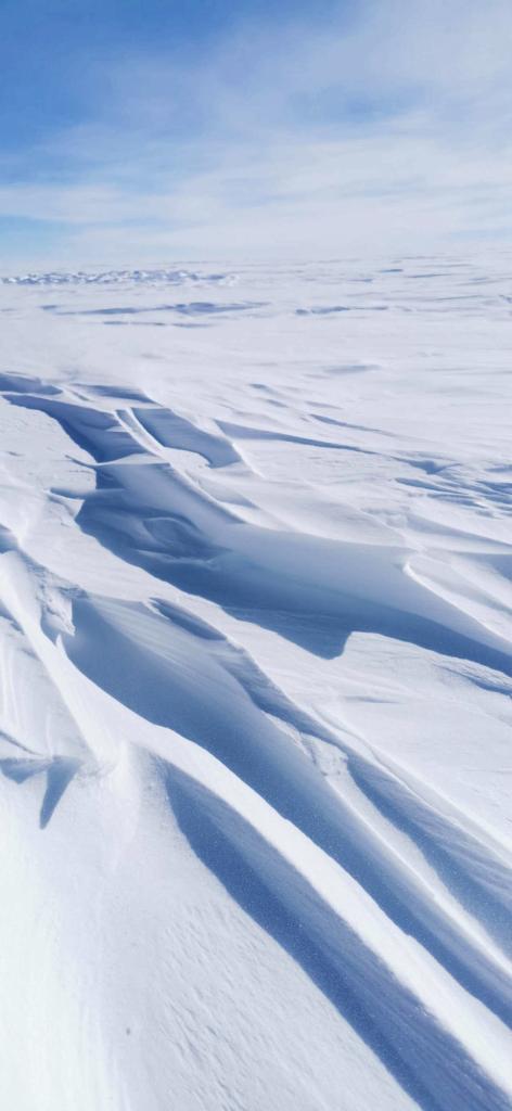 南极麒麟冰下湖的冰面雪丘。新华社发(李传金摄)
