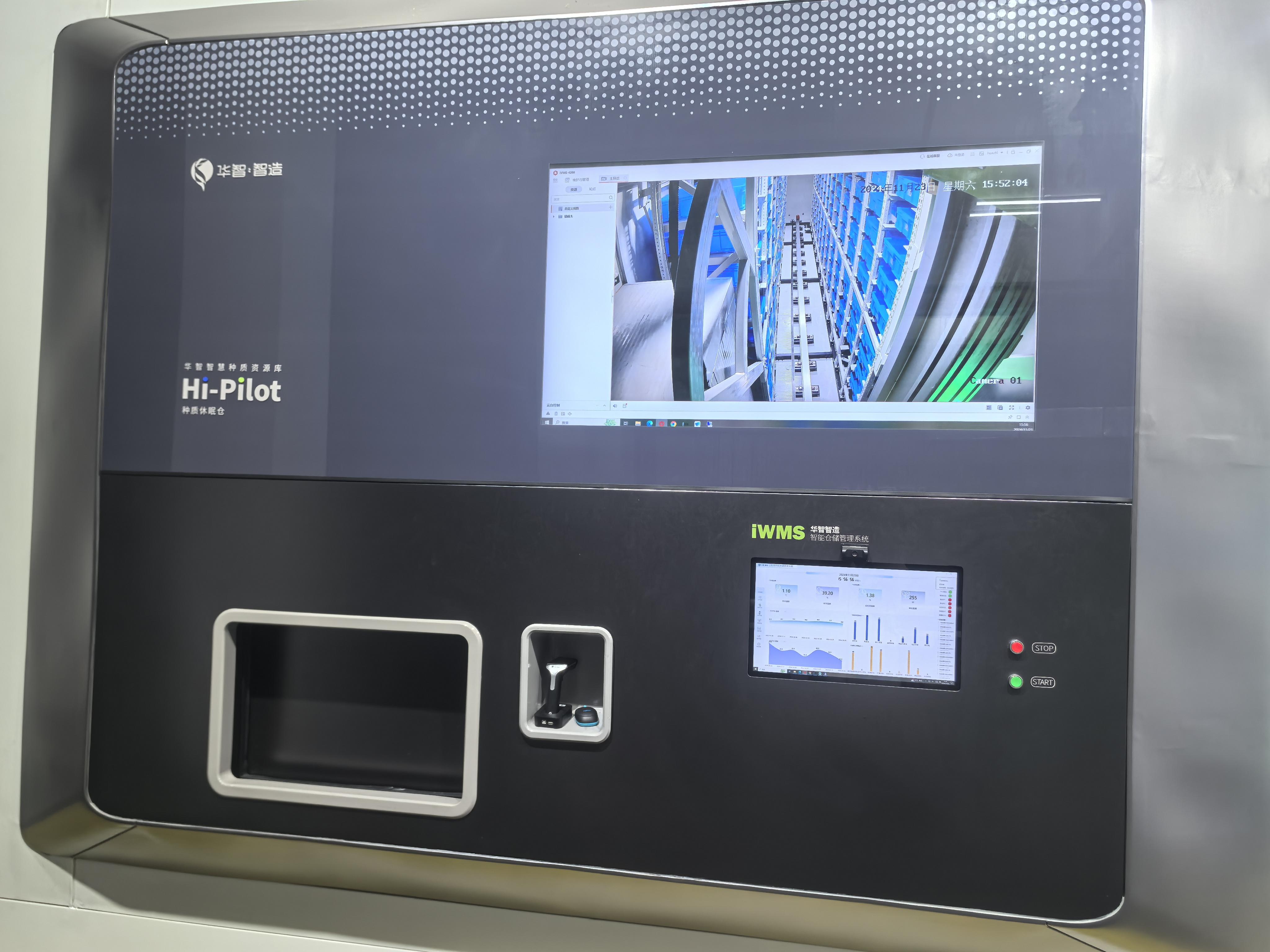 在华智生物展示区,一个自动化、信息化的智能种质休眠舱十分引人注目。操作人员只需要在屏幕上轻轻点击,便可对库内各项数据进行实时监控,其还具备货架管理、种质管理、设备管理等功能。