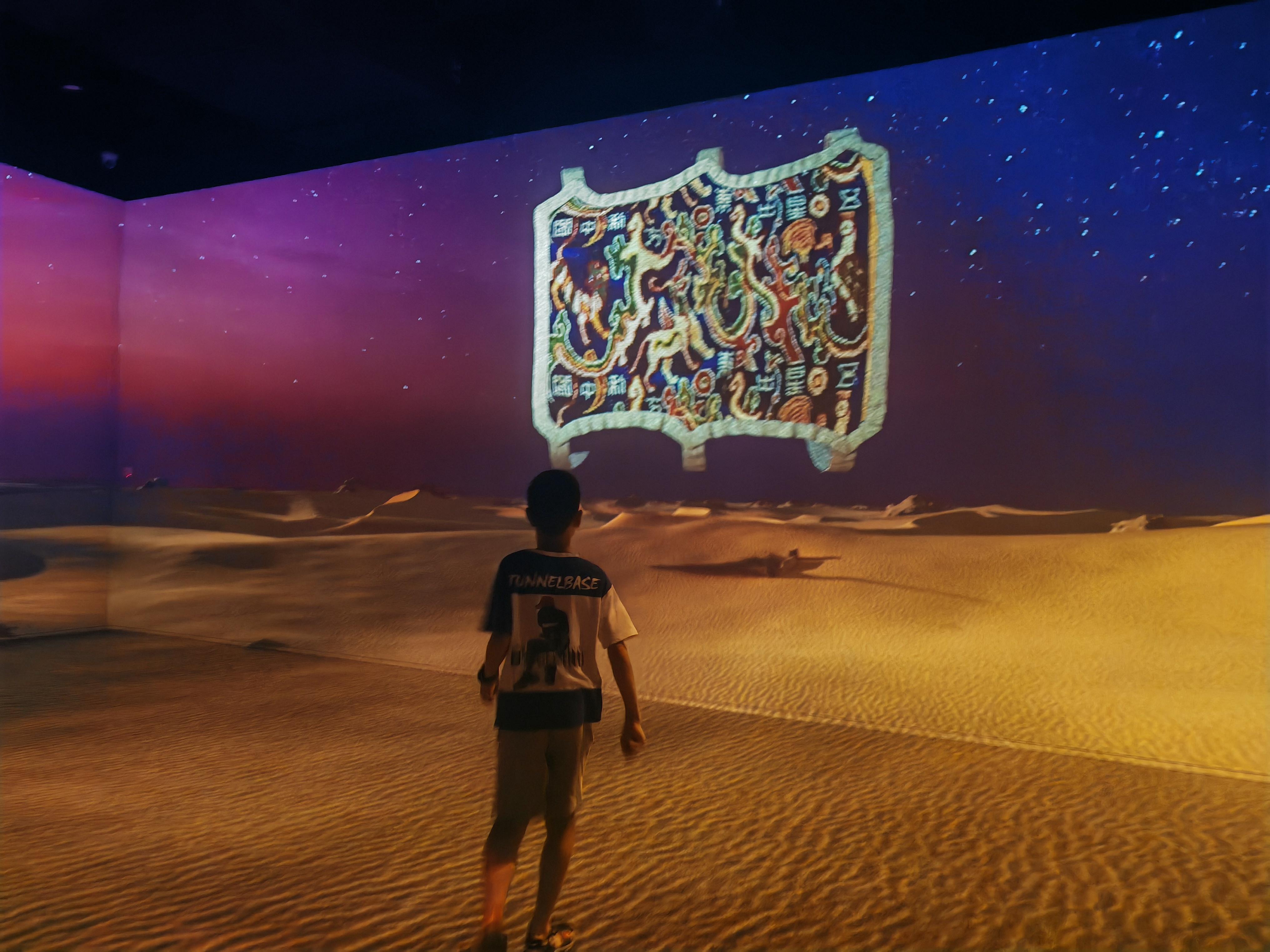 感叹完织锦工艺的巧夺天工,黄巧妹和家人被变幻的光影吸引,走进全域交互剧场。“这个剧场‘浑身’都是高科技。”杨思介绍,剧场通过空间数字声场、体感交互等技术,将尼雅遗址的实景影像和模拟图景有机融合,利用激光交互技术、全景声技术和裸眼3D等,激发了观众的共鸣。