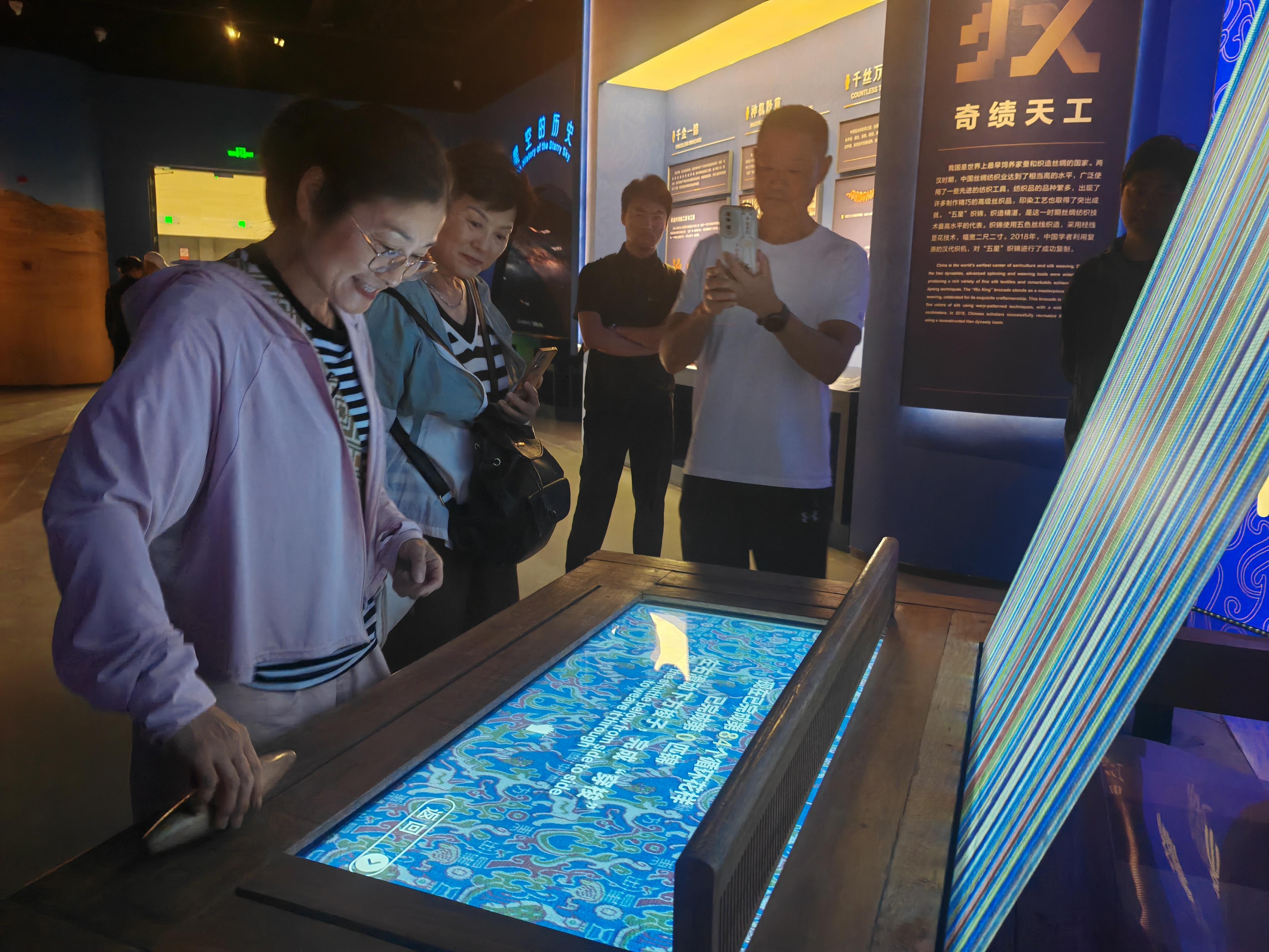 “屏幕上密密麻麻的全是各种颜色的细线,一推一拉间,我仿佛感受到古人织锦时的智慧与艰辛。”来自福建的游客黄巧妹说。