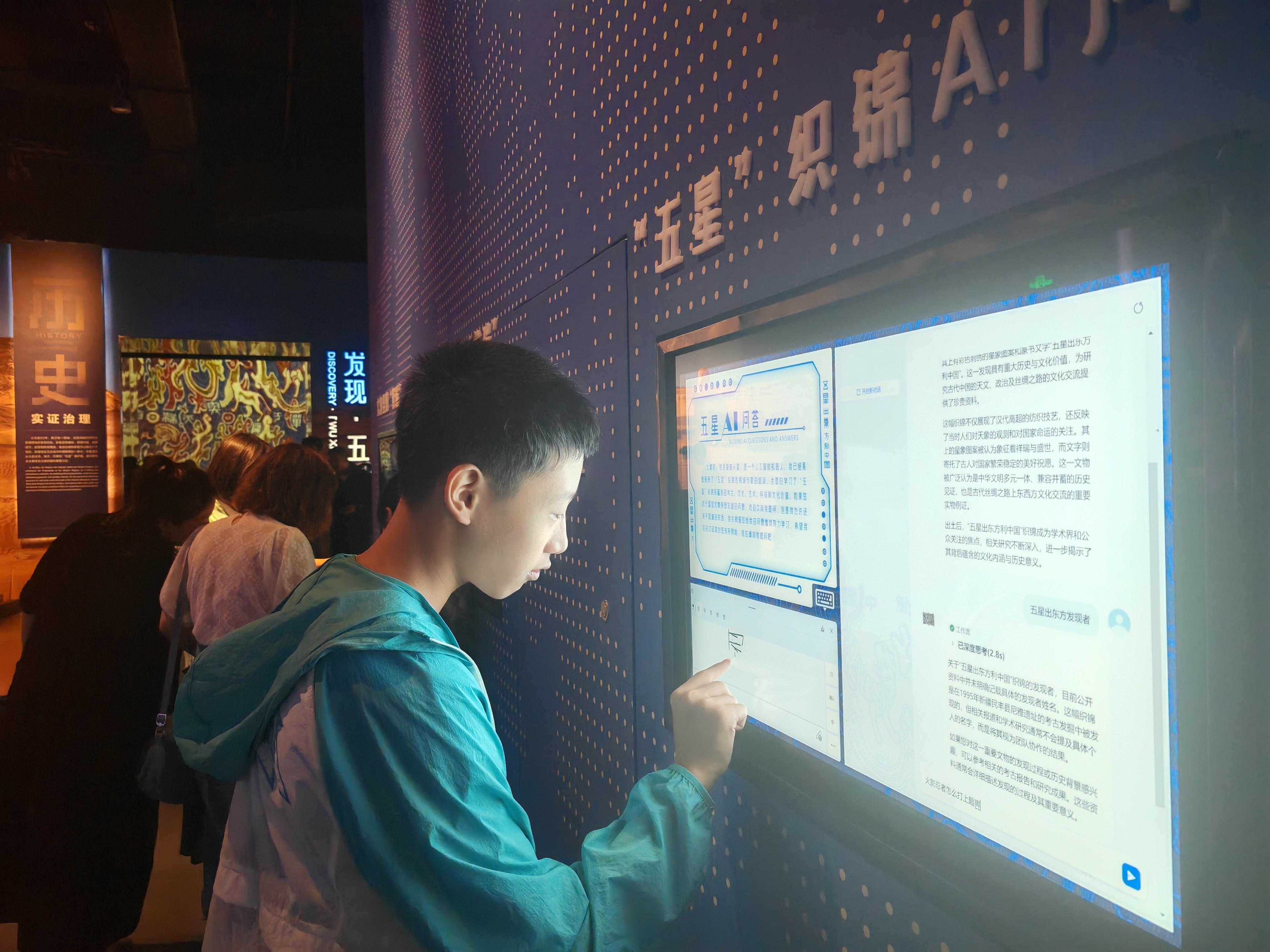 在全新的展厅内,参观者可以在全域交互剧场沉浸式了解国宝的前世今生;或在数字织机上感受织锦的每一寸经纬;也能在人工智能问答机前,体验关于国宝的“十万个为什么”。