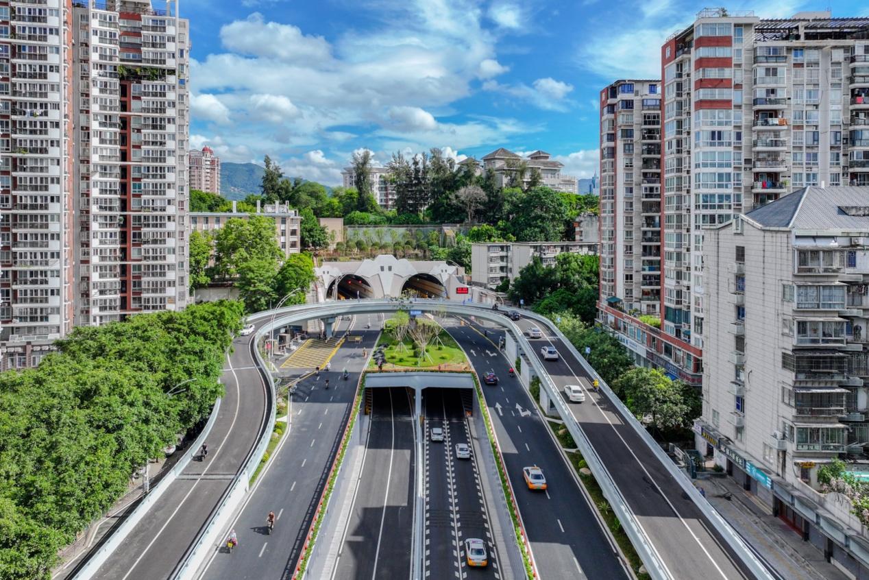 象山隧道项目位于福州市西二环快速路,全长约960米。项目团队创新采用“先东后西、边施工边通车”的建设模式,在拆除原有隧道基础上新建双层结构,让曾经市民高峰期“望路兴叹”的“蜂腰”变为双层双向8车道的“立体动脉”。