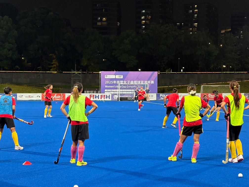为了更好地备战本届亚洲杯,中国女曲早早来到杭州。8月的杭州高温湿热,下沉式的曲棍球场更是酷暑难耐。姑娘们的训练不得不在早晚进行,不过无论是教练还是队员,对此都早有准备。
