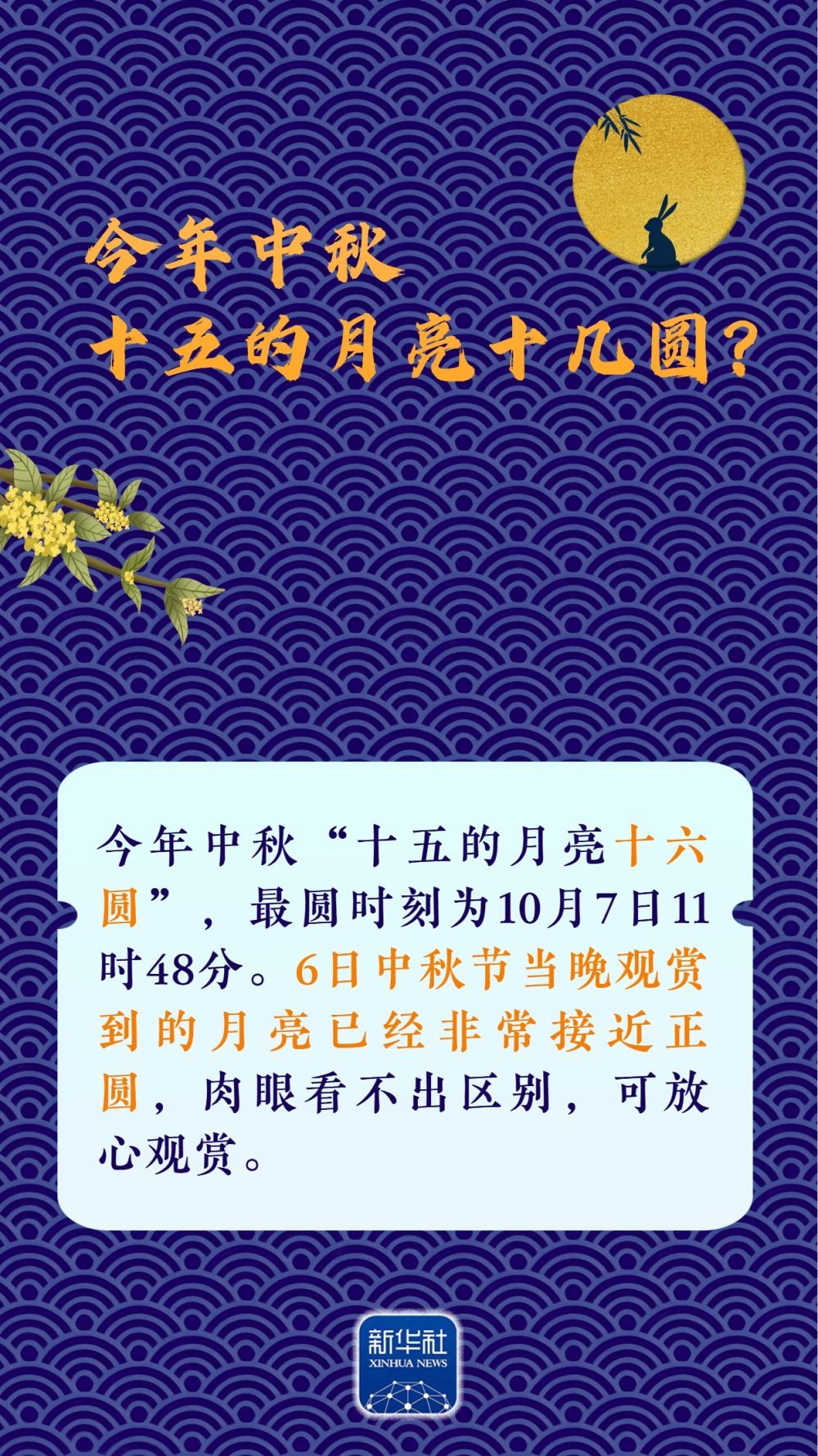 10月6日将迎中秋佳节。这个阖家团圆的节日,赏月是无可争议的重头戏之一。今年中秋,十五的月亮十几圆?月亮有啥特殊看点?讲究什么“姿势”?还有什么“彩蛋”?请收下这份中秋赏月指南,科学赏月,做好攻略→