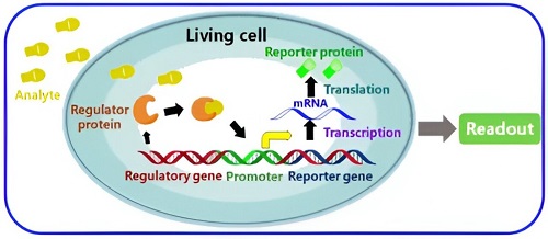 全细胞细菌生物传感器示例。图片来源:美国微生物学会