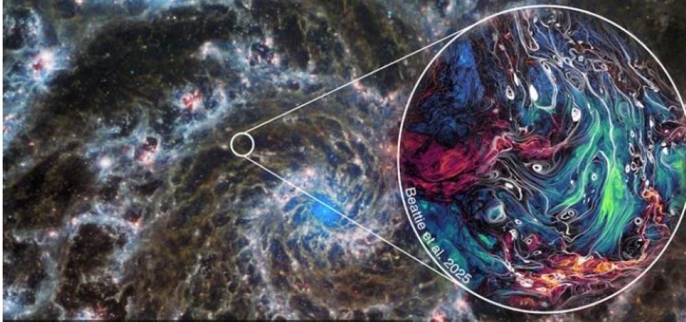湍流普遍存在于星际、大气、海洋、江河等自然现象和飞行器尾流、燃烧器燃烧等工程现象中。湍流问题是力学中一个复杂的问题,足够人们终其一生去研究。天体物理环境中的湍流与地球上的湍流略有区别,关键在于磁场。借助超级计算机的计算能力,科研人员开发出一种模拟技术,能以更高分辨率对星际介质中的磁力和湍流进行观察。这种模型让我们了解磁场如何引导气体流动、影响恒星诞生,并更加清楚如太阳风暴之类的宇宙天气对地球的影响。
