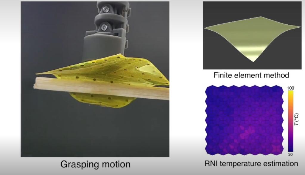 韩国科学技术院团队此次制作了一种折叠薄片式机器人,使用密集分布的热敏电元件构成,受热可改变形状。研究团队用一张40平方厘米的薄片展示了这一方法,该薄片由308个兼具加热器和感受器功能的电阻构成。这种双功能使之可以实现精确控制移动,系统可根据感受器反馈作出持续调整。