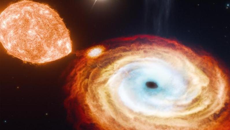 美国麻省理工学院和加州理工学院的物理学家在《自然》杂志上报告称,他们发现了一个罕见的黑洞“三体”系统——“V404天鹅座”。这个系统包含一个中心黑洞和两颗伴星,其中一颗伴星距离较远。中心黑洞通过引力与这两颗伴星产生相互作用。
