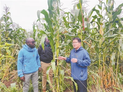 在中国团队奔赴肯尼亚近30次后,经过覆膜处理的玉米长到2米多高,与当地传统平地不覆膜处理的玉米相比,增高了一倍多,产量提高了99%—240%,水分利用效率则提升了127%—247%。