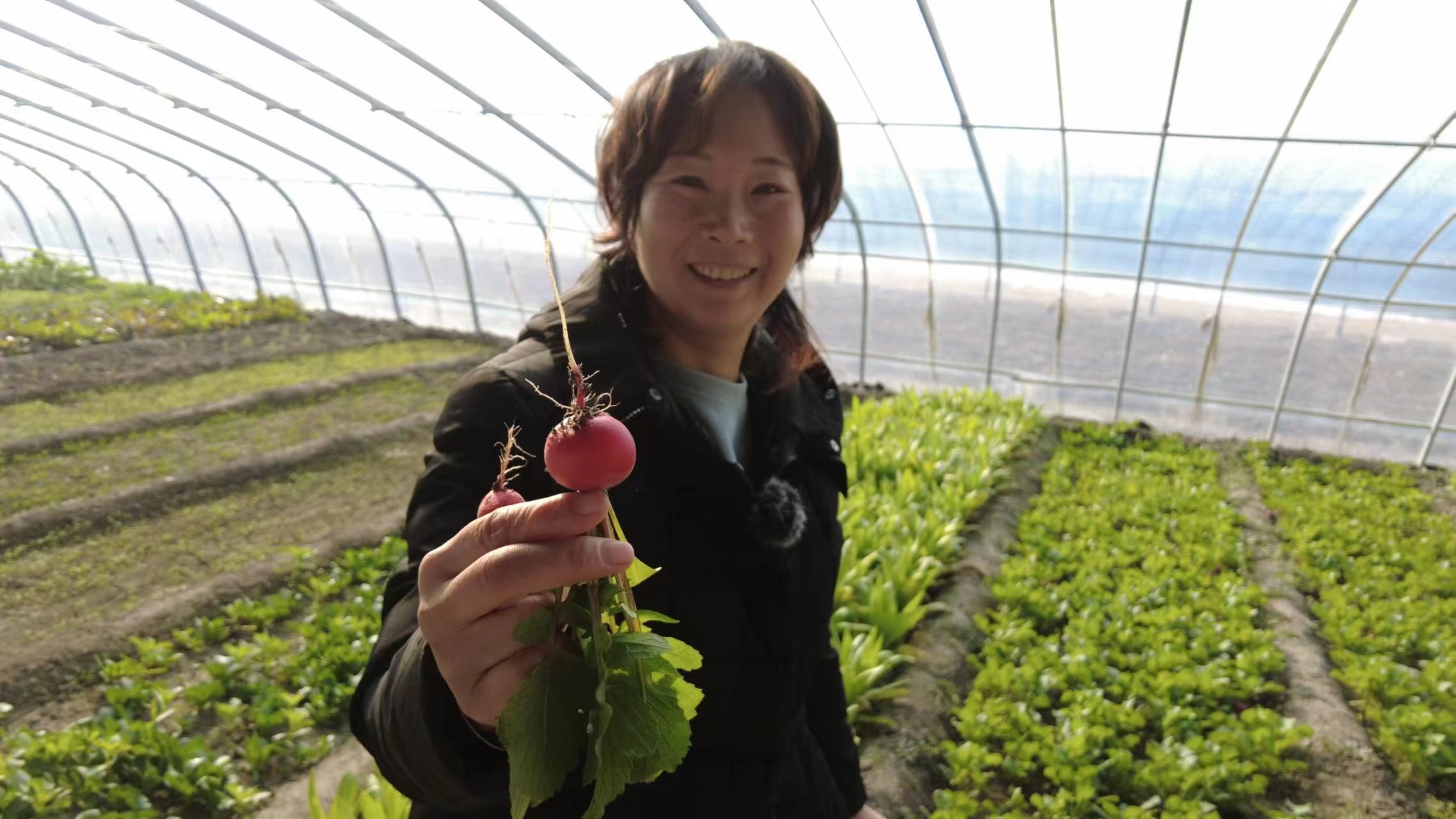 去年夏天,海河流域发生流域性特大洪水。东淀蓄滞洪区紧急启用,第六埠村被淹土地1.04万亩,其中温室大棚2022栋,就包括张希芳家17栋蔬菜大棚。洪水过后,第六埠村及时组建党员服务队,按照“水退一亩,耕进一亩”原则,组织农户加紧修复灾毁农田和农业设施,科学地开展冬小麦、蔬菜等作物改种补种。目前已补种冬小麦1223.2亩、蔬菜1200亩,修复棚室1600余栋。
